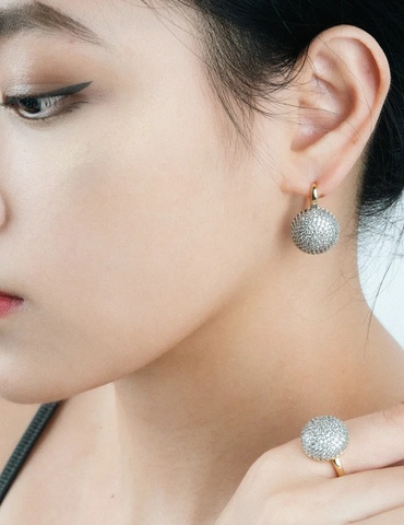 Luxo 2-Color 14K Ouro Anel Brincos das Mulheres Set Moda Jóias Cubic Zircon Inlay Cobre Banhado Acessórios Do Casamento & Do Partido