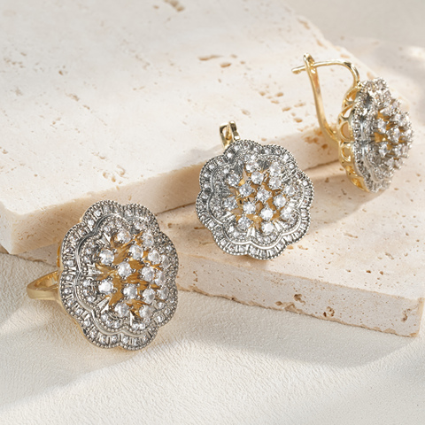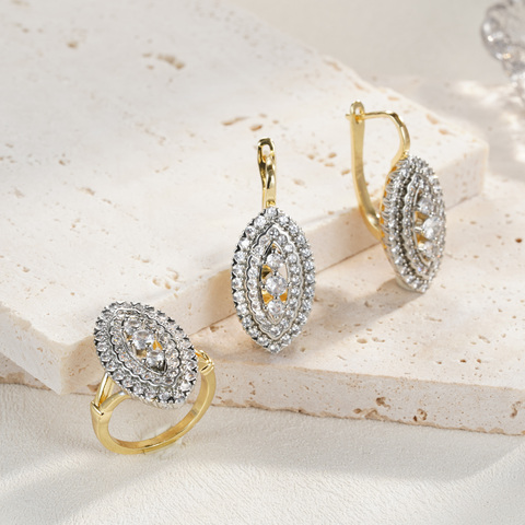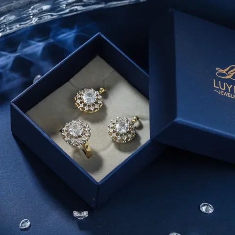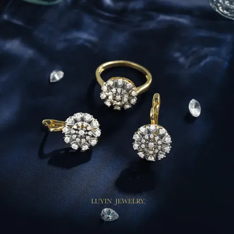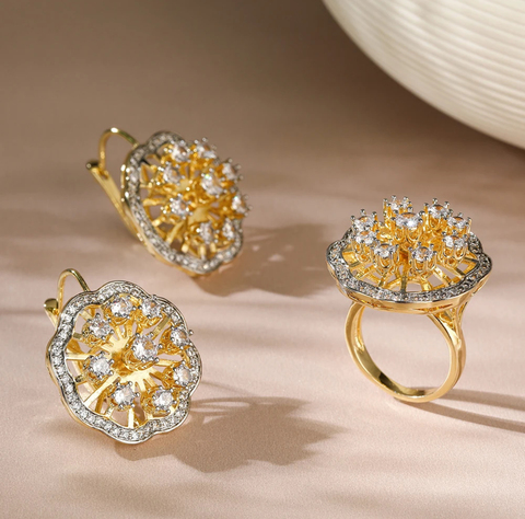 LUYIN Flora Série 14K Gold Copper Plated Jewelry Set Presente de Casamento 2 Cores para Mulheres para Festas-Inclui Brincos Anel Zircon