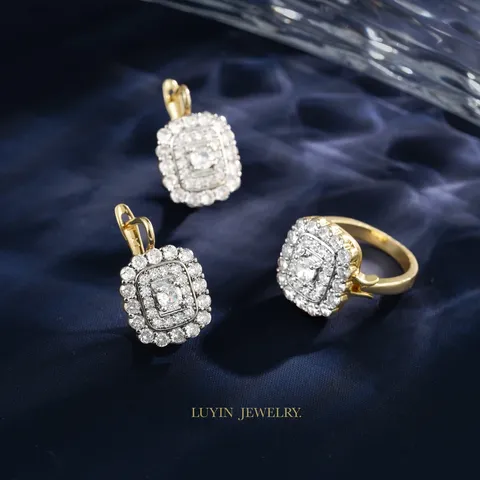 LUYIN 14K Banhado A Ouro Estilo Clássico Design 2 Tone Cobre Brincos Anel Conjuntos para Mulheres para Festa de Casamento Com Zircão Principal