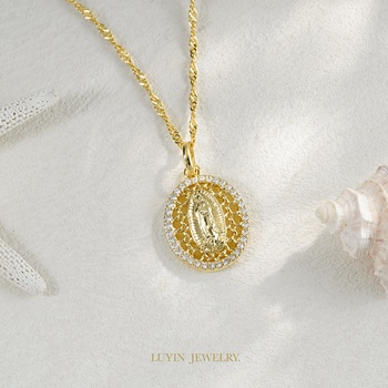 LUYIN 14K altın kaplama bakır dini Guadalupe bakire Mary kolye kolye erkekler kadınlar için günlük giyim çocuk 100% zirkon